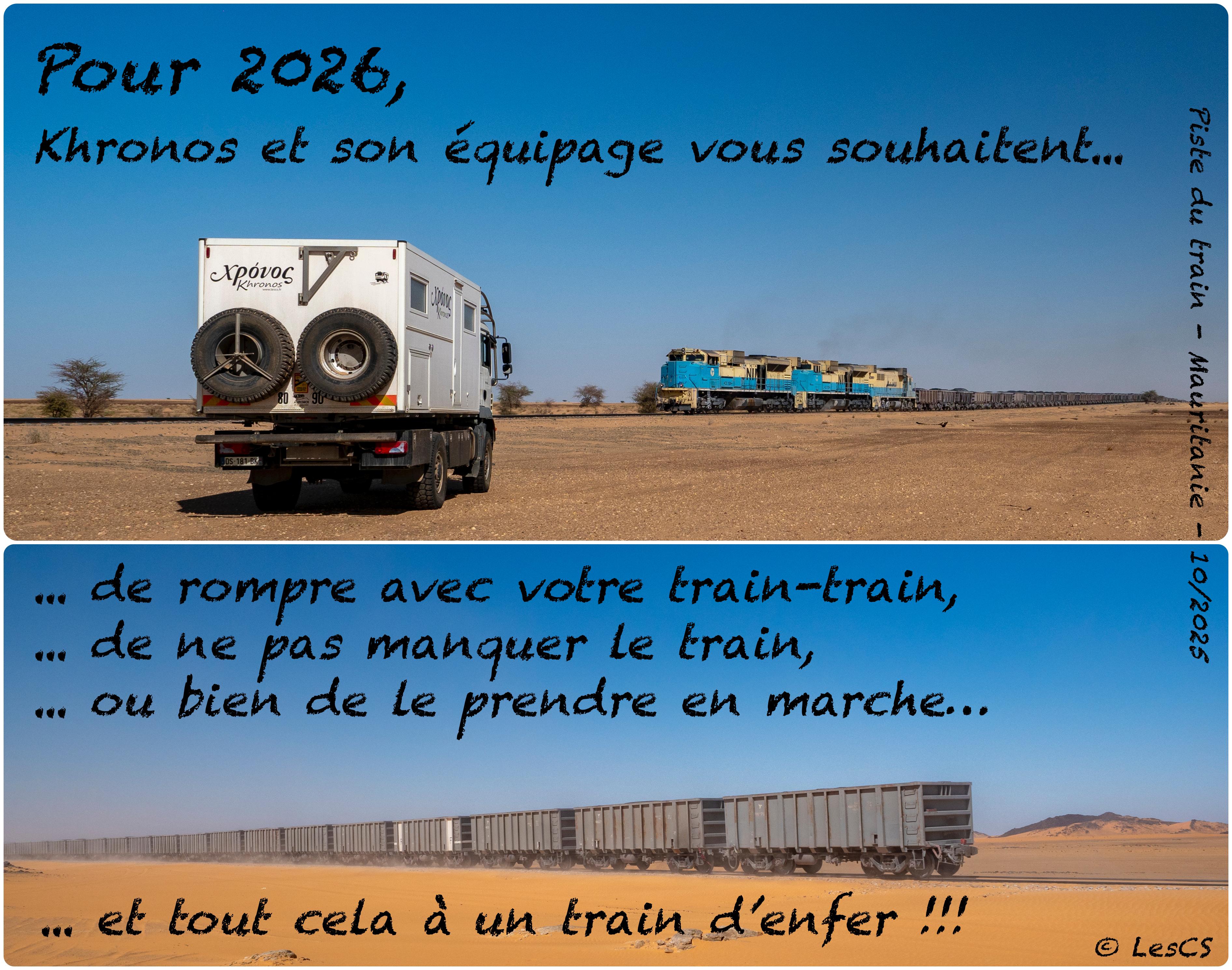 Janvier 2026. Nous sommes rentrés le 7 au soir dans le Champsaur après un bien beau voyage de 3 mois. Voyage différent des précédents par bien des aspects. Les carnets de voyage vont arriver… lentement, et sont à retrouver sur le page dédiée. Et pour bien commencer l’année, une petite carte de voeux sur le thème de notre entrée en Mauritanie.