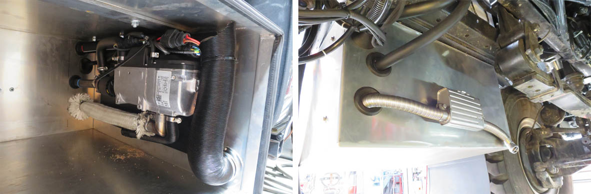 Nous avons choisi une chaudière Eberspächer (alimentation au gasoil) que nous avons fait installer par Eberca dans un coffre extérieur.
